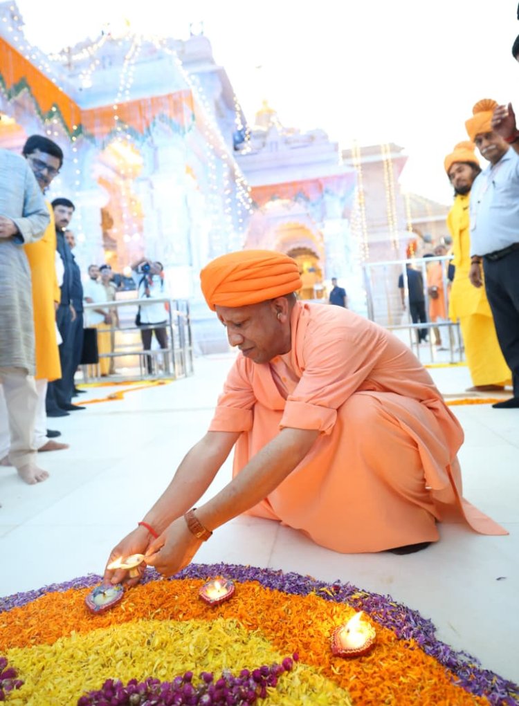 जगतगुरु श्रीराम दिनेशाचार्य महाराज जी ने कहा कि हम अक्सर राम पैड़ी पर कल्पना भर करते थे कि मां सरयू दीप जला रही हैं और श्रीराम की प्रतीक्षा कर रही हैं। योगी के नेतृत्व में वह कल्पना साकार हुई है। अब लगता है कि शरीर से हम कलियुग में हैं, पर मन और आत्मा से त्रेता युग में जी रहे हैं।